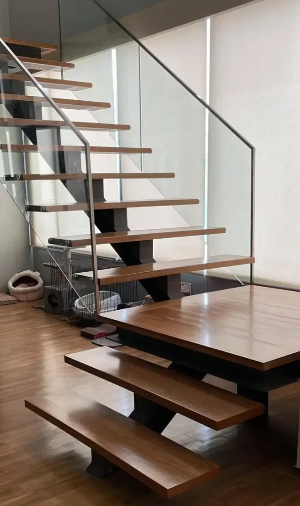 Woodenfloor and Glass Staircase at Penthouse Condo Renovation | Penthouse